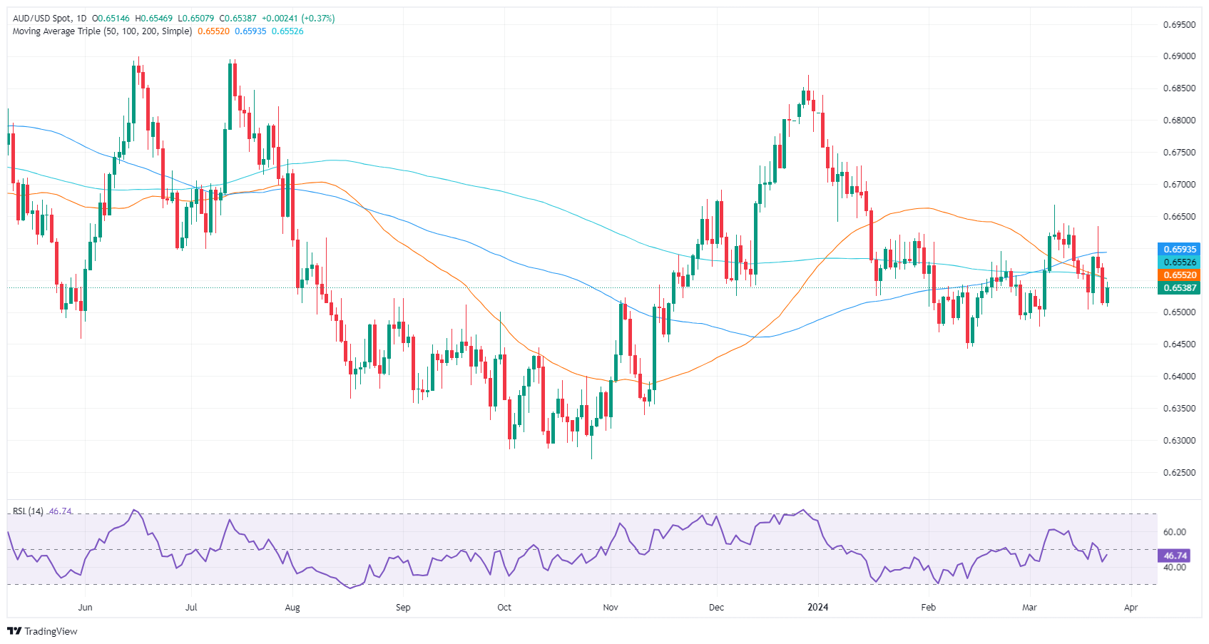 The Aussie Dollar (AUD) begins the Asian session virtually unchanged vs. the US Dollar after clocking solid gains of 0.41% on Monday. At the time of writing, the AUD/USD trades at 0.6539, beneath the 200-day moving average (DMA).