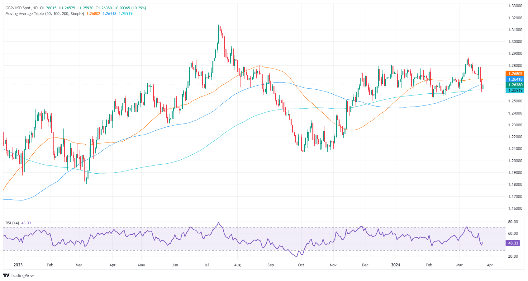 The Pound Sterling stages a mild recovery against the US Dollar in the mid-North American session, as the Greenback remains offered amid speculations the Federal Reserve would cut rates in June. At the time of writing, the GBP/USD trades at 1.2639. gains 0.32%.