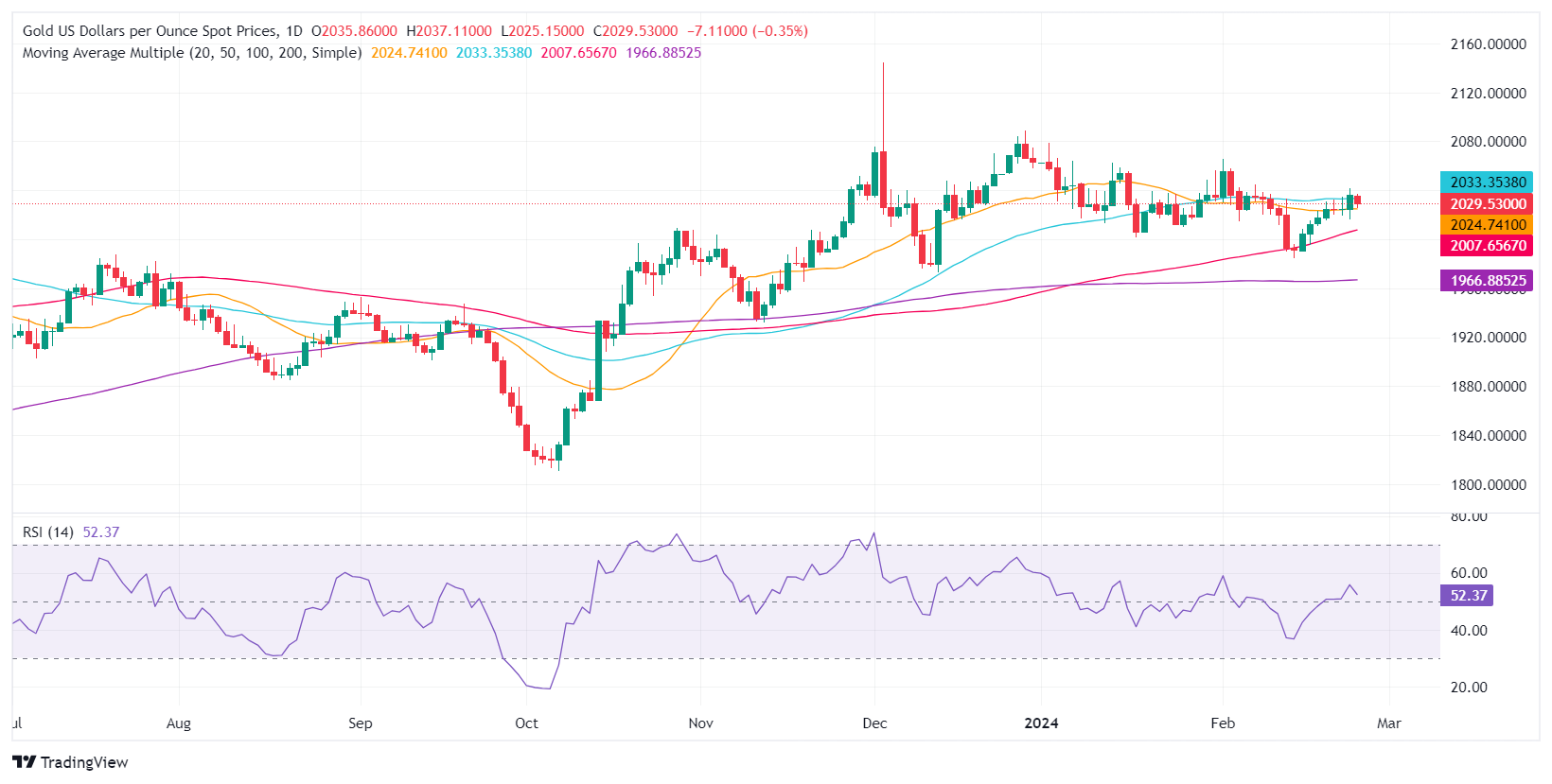 On the flip side, buyers dragging the XAU/USD spot price above the 50-day SMA could pave the way to challenge the $2,050 figure. Once those levels are cleared, up next would be the February 1 high at $2,065.60, ahead of the December 28 high at $2,088.48.